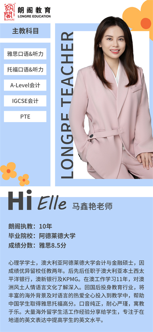 主讲科目:剑桥英语 授课风格:高互动型老师,讲解思路清晰,细致且有耐心,擅于对知识体系抽丝剥茧总结归纳。讲师简介:前国际贸易分析师,拥有外贸实战经验。高互动型老师,讲解思路清晰,细致且有耐心,擅于对知识体系抽丝剥茧总结归纳。可以结合不同文化与全球视野,三维加强基础与高段…